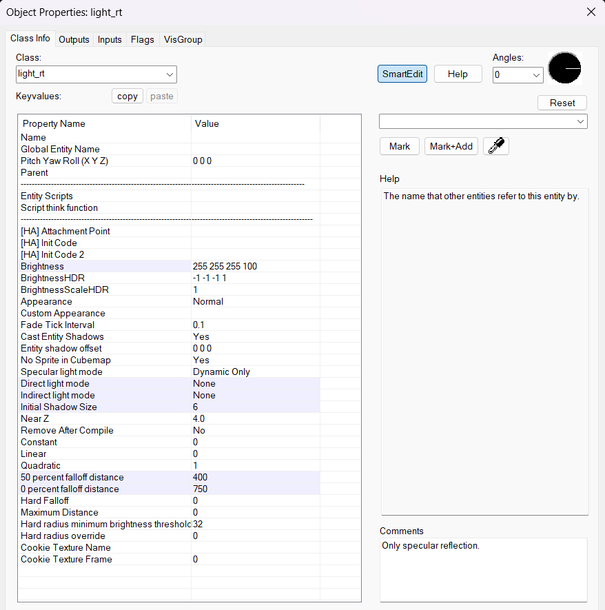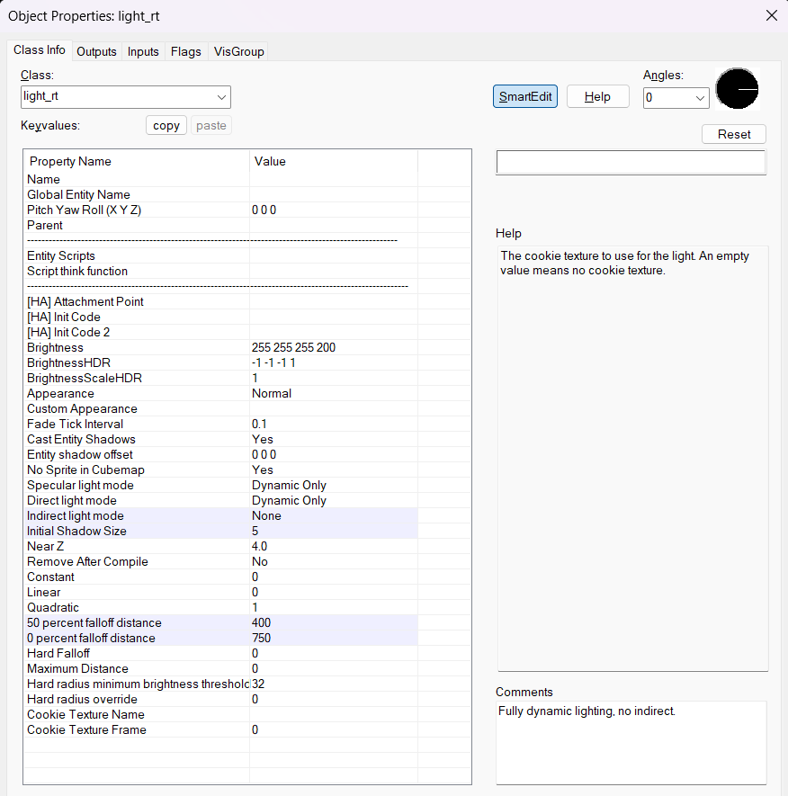 Set "50 percent falloff distance" and "0 percent falloff distance" KeyValues to adjust the look and feel