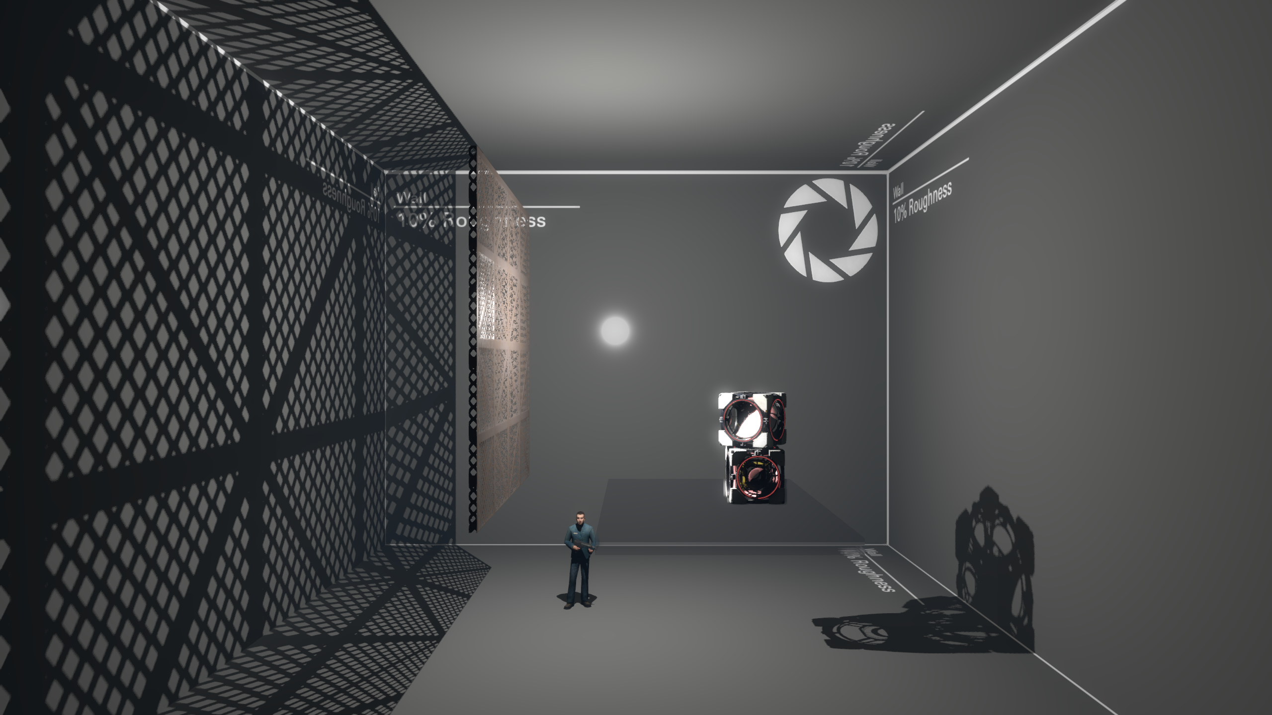 Middle: Specular lighting enabled. Notice a white circle appearing on the wall, as well as reflection on the grate.